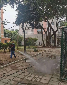 外防輸入,內(nèi)防擴(kuò)散,中心工作人員每天對(duì)場(chǎng)館營(yíng)房進(jìn)行消毒外,還在大門口設(shè)置消毒地墊,對(duì)所有進(jìn)入二沙車輛的輪胎、行人鞋底進(jìn)行消毒。運(yùn)動(dòng)員每天接觸的訓(xùn)練場(chǎng)地設(shè)施衛(wèi)生保障也及其重要,中心專門安排工作人員每天對(duì)所有訓(xùn)練場(chǎng)館噴藥消毒,同時(shí)加大院內(nèi)環(huán)境衛(wèi)生的整治力度,對(duì)中心院內(nèi)環(huán)境、宿舍、電梯、道路、綠化等進(jìn)行無死角噴藥消毒。
