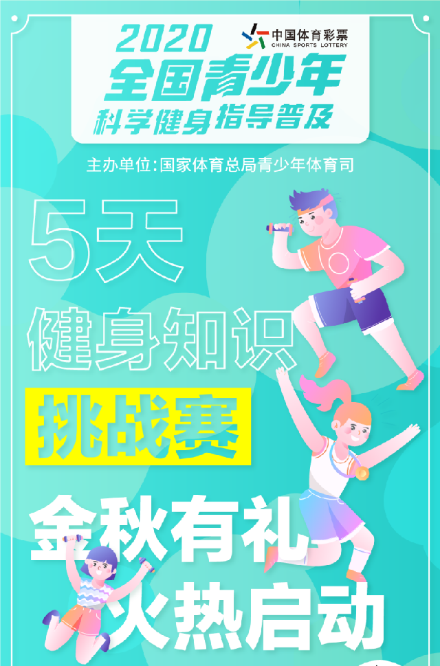 來了!由國家體育總局青少年體育司主辦,國家體育總局體育科學研究院承辦,廣東原動力信息科技有限責任公司執(zhí)行的“2020年全國青少年科學健身指導普及——5天健身知識挑戰(zhàn)賽”國慶正式啟動!陪你度過一個有意義的黃金假期!