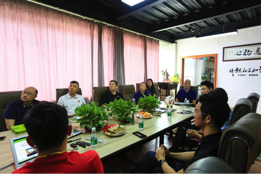 近日,廣東省體育局體育產(chǎn)業(yè)與科教宣傳處處長庾偉健、副調(diào)研員朱志剛,省體育局青少處副處長羅茜、廣東省足球協(xié)會副秘書長席兵等一行到中國足協(xié)·中國之隊(duì)足球器材服務(wù)商——“愛高體育”總部進(jìn)行調(diào)研,愛高體育董事長梁廣仁、運(yùn)營總監(jiān)梁嘉華、愛高孵化足球管理咨詢項(xiàng)目共鳴體育聯(lián)合創(chuàng)始人曾祥禮介紹了企業(yè)發(fā)展及產(chǎn)品生產(chǎn)等情況。