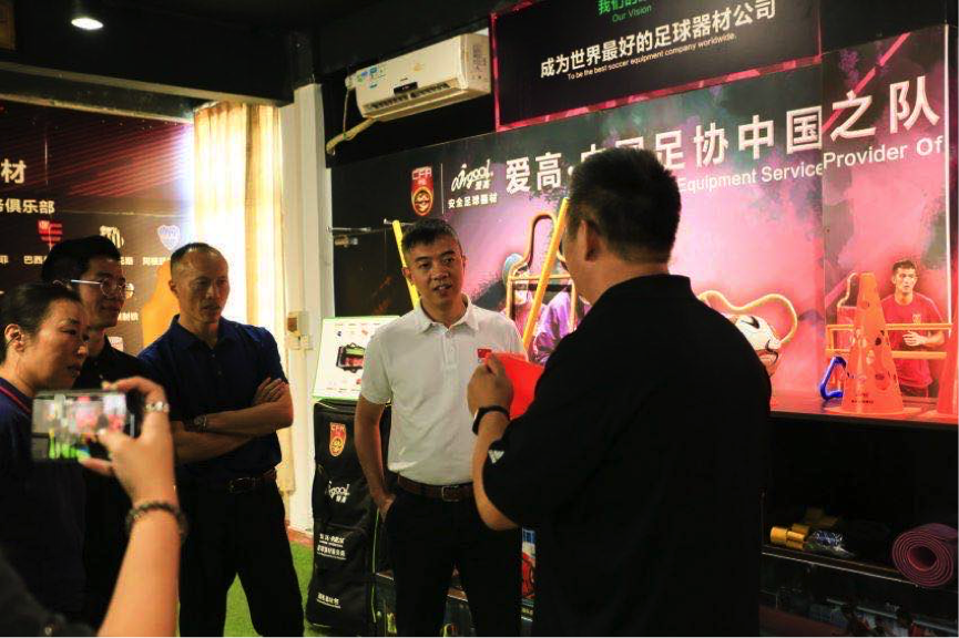 調(diào)研組一行在參觀了愛高體育的專業(yè)足球器材展廳,對愛高旗下職業(yè)足球隊(duì)器材系列、校園足球器材系列、幼兒足球器材系列、家用足球器材系列等全系列產(chǎn)品進(jìn)行了全面而詳細(xì)的了解后,充分肯定了愛高體育在足球器材研發(fā)和應(yīng)用方面的深厚積累。