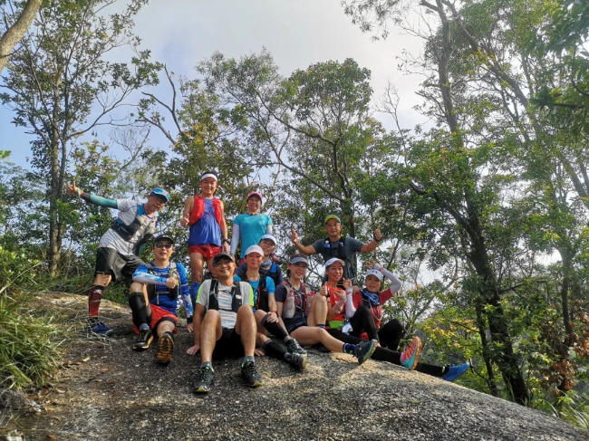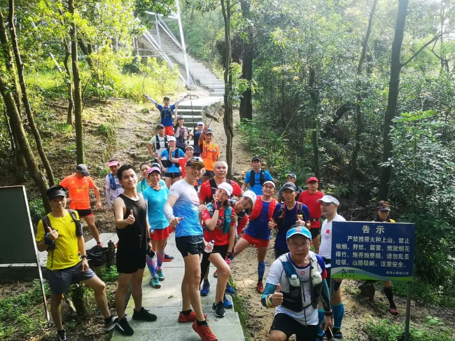 K1位開始,去到板樟山公園1340臺階位的這段中林道,略有起伏,飛人們?nèi)匀豢梢钥癖?,因此基本捕捉不到他們的身影。但無論是飛人大部隊(duì)還是跑得慢的收尾小分隊(duì)的,都喜歡在白蓮洞中林道愛心石這里留下合影。