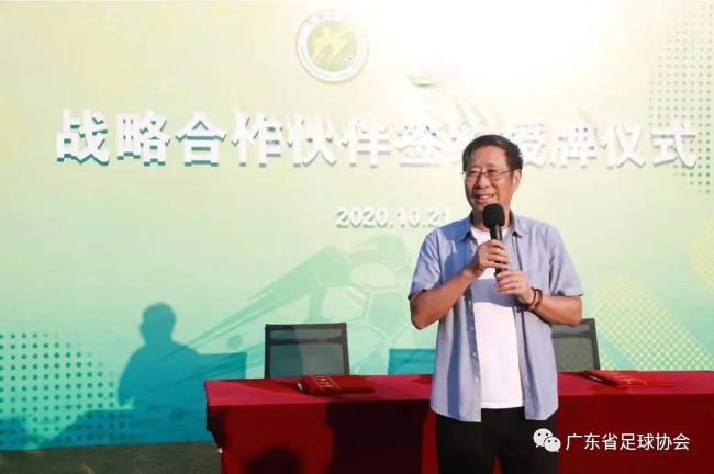 儀式上,廣東省足球運動中心主任、廣東省足球協(xié)會副主席程志文與朝向集團董事長陳朝行代表雙方簽署合約,程志文主任向陳朝行董事長頒發(fā)“戰(zhàn)略合作伙伴”榮譽牌匾。