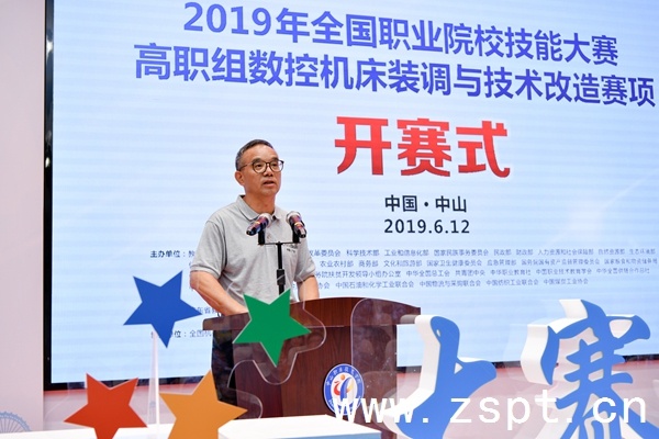 6月12日,由教育部等35個部門(單位)主辦,廣東省教育廳、中山市人民政府承辦,全國機械職業(yè)教育教學指導委員會、中山職業(yè)技術學院協(xié)辦的2019年全國職業(yè)院校技能大賽高職組數(shù)控機床裝調(diào)與技術改造賽項在中山職院開賽。機械工業(yè)教育發(fā)展中心副主任、全國機械職業(yè)教育教學指導委員會秘書長鄭麗梅,廣東省教育廳主任督學李璧亮,中山市人民政府副市長徐小莉,廣東省教育廳職業(yè)教育與終身教育處副處長張家浚,中山市人民政府辦公室調(diào)研員周尚謙,中山市教育和體育局局長李嘉穎,學校校長吳建新,黨委副書記、副校長李懋以及大賽各工作組相關負責人等出席活動,來自全國28個省、市、自治區(qū)的52所參賽院校代表隊齊聚一堂,共同見證這項國家級賽事的正式啟幕。開賽式由吳建新校長主持。