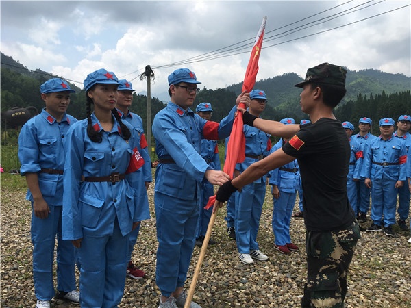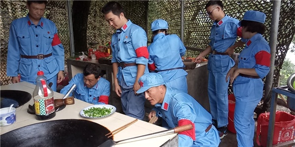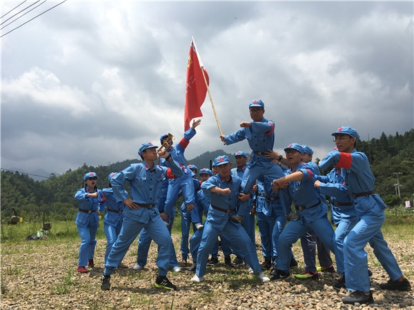 一大早學(xué)員們穿著整齊的紅軍服,來(lái)到井岡山紅軍訓(xùn)練場(chǎng)開(kāi)始了紅色拓展訓(xùn)練活動(dòng),在基地教官的帶領(lǐng)下,學(xué)員們先學(xué)習(xí)了“三灣改編”的歷史背景,根據(jù)“三灣改編”的特點(diǎn)及要求進(jìn)行隊(duì)伍改編。學(xué)員們?cè)趦晌唤坦俚闹笓]下被分成了兩個(gè)團(tuán)隊(duì),并選出團(tuán)長(zhǎng)、政委指揮系列團(tuán)隊(duì)活動(dòng),主要包括團(tuán)隊(duì)展示、傷員救護(hù)、自做紅軍餐、破譯密碼、齊心協(xié)力過(guò)草地、搶灘登陸等環(huán)節(jié)。第一環(huán)節(jié)是團(tuán)隊(duì)文化展示,兩個(gè)團(tuán)隊(duì)在團(tuán)長(zhǎng)、政委的組織下制定了自己團(tuán)隊(duì)的團(tuán)名、口號(hào)、團(tuán)歌等并進(jìn)行展示;第二環(huán)節(jié)是傷員救護(hù),通過(guò)模仿紅軍戰(zhàn)士受傷,戰(zhàn)士們要通過(guò)自制單架將受傷戰(zhàn)士送回營(yíng)地;第三環(huán)節(jié)是學(xué)員們通過(guò)合作自做紅軍餐,體驗(yàn)革命先烈們自強(qiáng)不息的精神;第四環(huán)節(jié)是破譯密碼,通過(guò)游戲體驗(yàn)的方式讓學(xué)員們體會(huì)到了團(tuán)隊(duì)領(lǐng)導(dǎo)的核心、團(tuán)隊(duì)目標(biāo)、團(tuán)隊(duì)紀(jì)律在一個(gè)團(tuán)隊(duì)中的重要性,培養(yǎng)了各學(xué)員的創(chuàng)造性思維,提高了學(xué)員對(duì)問(wèn)題的認(rèn)識(shí)及解決問(wèn)題的能力;第五個(gè)環(huán)節(jié)齊心協(xié)力過(guò)草地,分組比拼,展現(xiàn)團(tuán)隊(duì)合作的力量;第六個(gè)環(huán)節(jié)搶灘登陸,磨煉了各學(xué)員的意志,加強(qiáng)了各學(xué)員之間的溝通,培養(yǎng)了團(tuán)隊(duì)精神,讓大家體會(huì)到合作共贏所取得的成果?;顒?dòng)中,每位學(xué)員都在挑戰(zhàn)自己,戰(zhàn)勝自己,展現(xiàn)了積極向上、團(tuán)結(jié)一心、行為有序的蓬勃面貌。