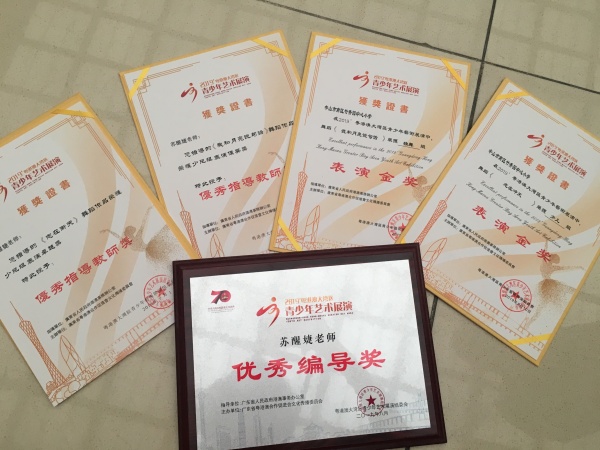 2019年8月10日在深圳大劇院隆重舉行頒獎典禮,中山市南區(qū)竹秀園中心小學(xué)原創(chuàng)舞蹈《志在沖天》和獨舞《該和月亮說句話》均榮獲粵港澳大灣區(qū)青少年藝術(shù)總展演金獎;該校舞蹈老師蘇醒婕榮獲兩個舞蹈的優(yōu)秀指導(dǎo)老師稱號和優(yōu)秀編導(dǎo)稱號。