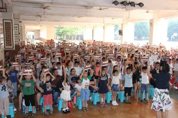 全體行政、負責培訓老師、全體新生和家長們集中星光廣場,活動正式開始,由阮月華副校長主持。高玉璇校長帶領學校行政向每位同學頒發(fā)了學校圍繞鯉魚文化自主設計的入學通知書。此通知書外形從鯉魚文化標志中的龍頭演變出來的龍,寓意載著學校不斷飛躍攀升。內頁有校訓、校歌、及龍門牌坊,以及熱情洋溢、寄托期望的歡迎辭。更特別的是,通知書上所有的新生姓名均由高校長暑假期間親手書寫。小朋友們拿到這張創(chuàng)意十足、內涵豐富入學通知書,個個都興奮不已。接著,是校少先隊大隊部副大隊長陳浩琳同學為新生和家長致歡迎辭,游鯉隊的成員表演蘊含鯉魚文化八大內涵的校歌。最后全體新生在家長的見證下,進行了現(xiàn)場抽簽分班。