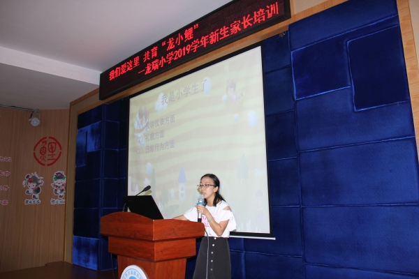 家長培訓主題為“共育‘龍小鯉’,我們愛這里”。何斌主任以《百年端本 龍瑞有鯉:“四小四大”辦人民滿意基礎教育》為題向家長們介紹學校特別是鯉魚文化的建設情況。鯉魚文化豐富的內涵、精彩的活動、優(yōu)異的成績贏得了家長們的一波波掌聲,何主任幽默風趣的話語收獲了家長們的一陣陣笑聲。游鯉隊的同學用表演的形式為家長們展示了學校的鯉魚文化;大隊輔導員劉月初老師給家長們講述了學生常規(guī)要求;心理老師吳樂紅老師為家長帶來了《新起點,心陪伴》的講座,講述了家長在孩子心理成長中的重要性,讓家長學會欣賞孩子,與孩子共同成長。家長們紛紛表示,在這次培訓中,自己受益匪淺。