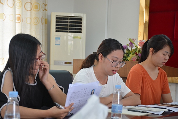 教導(dǎo)處吳校長(zhǎng)首先給臨聘教師介紹了學(xué)校的情況和在座的各位行政,讓她們認(rèn)識(shí)了解。7位老師依次做了自我介紹,并從職業(yè)規(guī)劃和目標(biāo)、準(zhǔn)備做一個(gè)怎樣的老師、如何處理與師生之間的關(guān)系、如何處理教學(xué)遇到的問題等方面發(fā)表自己的看法。大家都很認(rèn)真準(zhǔn)備,直言不諱說出自己的真實(shí)想法,言語(yǔ)中不乏閃光點(diǎn)。梁校長(zhǎng)從教育的紅線和如何做一位好老師兩個(gè)各方面對(duì)她們進(jìn)行師德教育。劉偉華主任從教學(xué)常規(guī)“備、教、批、輔、考、研”六個(gè)方面給她們進(jìn)行詳細(xì)的教學(xué)崗前培訓(xùn)。陳新源主任從德育管理方面給她們提了一些要求和建議。