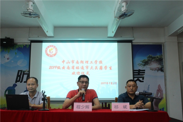 首先,程少輝校長代表學校發(fā)表歡迎致辭。程校長歡迎同學們加入南朗(李東海)理工學校這個大家庭。他說,中山和大關(guān)雖然相隔千里,但是心連心、一家親。既來之則安之,程校長建議大家要盡快調(diào)整好狀態(tài),努力適應中山的氣候環(huán)境,為新的學習生活做好準備。遇到困難時,主動向老師和學哥學姐們尋求幫助。