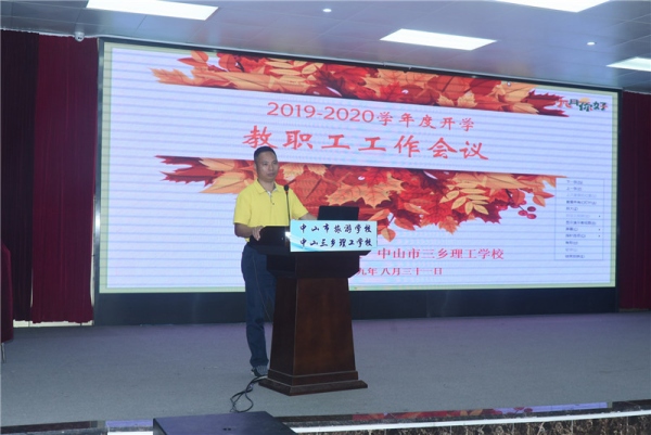 8月31日上午的全體教職工會議上,劉偉思校長通報了暑期的部分工作:2019屆招生750人,粵菜師傅基地獲得扶持資金200萬,大師工作室獲扶持資金10萬,順利開展了粵菜師傅培訓(xùn)班等等。劉偉思校長對暑假期間加班加點(diǎn)工作的教職員工們表示了感謝,同時,也對全校教職員工提出了新一學(xué)年的工作要求:一、統(tǒng)一思想,提高站位,認(rèn)清形勢,把握機(jī)遇。要對職業(yè)教育和技能培訓(xùn)的前景充滿希望。習(xí)近平考察甘肅職業(yè)學(xué)校指出,做強(qiáng)實體經(jīng)濟(jì)需要大量技能型人才,需要大力弘揚(yáng)工匠精神,發(fā)展職業(yè)教育前景廣闊、大有可為。李克強(qiáng)指出:開展大規(guī)模職業(yè)技能培訓(xùn),是提升勞動者就業(yè)創(chuàng)業(yè)能力、緩解結(jié)構(gòu)性就業(yè)矛盾、促進(jìn)擴(kuò)大就業(yè)的重要舉措,是經(jīng)濟(jì)邁向高質(zhì)量發(fā)展的重要支撐;要落實好中國共產(chǎn)黨中山市第十四屆委員會第七次全體會議研究部署的工作,深刻把握中山發(fā)展現(xiàn)狀,找準(zhǔn)工作著力點(diǎn)和突破口;要深刻認(rèn)識香港暴亂的影響、危害,堅決維護(hù)國家的主權(quán)、安全和發(fā)展利益。二、堅持以習(xí)近平新時代中國特色社會主義思想為指導(dǎo),全面貫徹黨的教育方針,落實立德樹人根本任務(wù),堅持中山德育文化理念,完善中山德育工作體系,深化課程育人、文化育人、活動育人、實踐育人、管理育人、協(xié)同育人,著力培養(yǎng)擔(dān)當(dāng)民族復(fù)興大任、有博愛創(chuàng)新精神的時代新人。學(xué)校將以黨建工作為抓手,進(jìn)一步打造干部隊伍,并采用加強(qiáng)黨的領(lǐng)導(dǎo)--把握意識形態(tài)--提升育人水平--突出頂層設(shè)計--狠抓教學(xué)、德育常規(guī)--實施精細(xì)管理--開展專業(yè)研究--實現(xiàn)立德樹人的路徑,落實學(xué)校各項工作任務(wù)。三、開學(xué)后的課程安排、班主任以及任課教師安排、新生接待、課室安排、后勤服務(wù)、開學(xué)典禮等各項事務(wù)必須落實到位,責(zé)任到人。四、本學(xué)年度必須落實的確保政治安全,進(jìn)一步加強(qiáng)意識形態(tài)工作、科學(xué)設(shè)置課程、落實安全工作、開展“不忘初心,牢記使命”主題教育、建立健全教師師德建設(shè)長效機(jī)制、進(jìn)一步整合升級改造專業(yè)等18個重要工作。