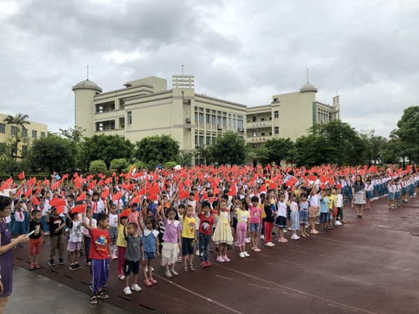 學(xué)校全體師生排列著整齊的隊(duì)伍齊聚田徑場,共同參與“我為祖國升國旗”升旗儀式?;顒又?,同學(xué)們昂首挺胸,精神抖擻地望向升旗臺,伴隨著《義勇軍進(jìn)行曲》的奏響,注視著冉冉升起的五星紅旗。全體師生齊聲歌唱國歌,揮動手中的小紅旗,表達(dá)出對祖國崇高的敬意。升旗儀式后,學(xué)校吳燕芳校長發(fā)表了熱情洋溢的講話,教導(dǎo)同學(xué)們要珍惜當(dāng)下來之不易的生活,努力奮斗,為祖國未來的發(fā)展貢獻(xiàn)自己的一份力量。