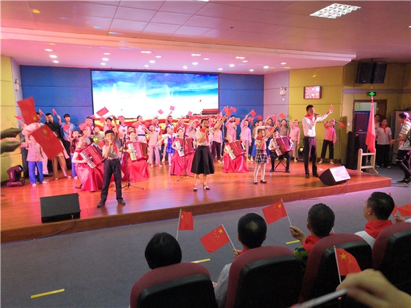 本次隊(duì)日活動(dòng)緊扣主題,發(fā)掘南區(qū)的紅色文化和僑鄉(xiāng)文化,結(jié)合對(duì)偉大祖國70周年華誕的美好祝福,通過六個(gè)篇章的演繹,展現(xiàn)了新時(shí)代少先隊(duì)員富有朝氣、充滿活力、積極向上的精神風(fēng)貌,是對(duì)少先隊(duì)員進(jìn)行社會(huì)主義核心價(jià)值觀教育的一次良好實(shí)踐。其中,紅領(lǐng)巾快閃融合手風(fēng)琴演奏、獨(dú)唱、合唱、健美操等多種形式,調(diào)動(dòng)了現(xiàn)場(chǎng)觀眾的熱情,大家齊唱《我和我的祖國》,將活動(dòng)推向高潮。