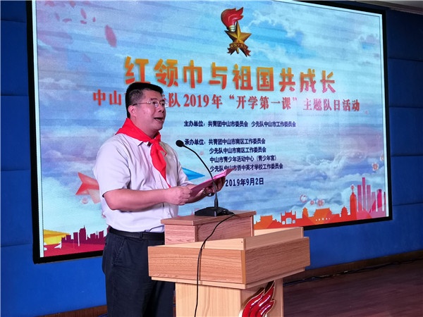 9月2日,開學(xué)第一天,以“我是新時(shí)代好隊(duì)員,我與祖國共成長(zhǎng)”為主題的中山市少先隊(duì)2019年“開學(xué)第一課”主題隊(duì)日活動(dòng)在中山市僑中英才學(xué)校舉行。市委副書記陳文鋒,團(tuán)市委書記李凱航,南區(qū)黨工委書記郭淵,團(tuán)市委副書記、市少工委主任李曉鳴,市教體局、市婦聯(lián)、市關(guān)工委等相關(guān)單位領(lǐng)導(dǎo),以及全市各基層團(tuán)委、團(tuán)工委書記、少工委主任、少先隊(duì)總輔導(dǎo)員、少先隊(duì)員代表230人出席本次活動(dòng)。