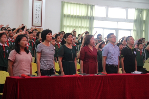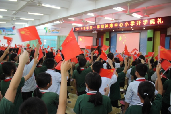 秋雨淅瀝,2019年9月2日上午9點(diǎn),在莊嚴(yán)的國(guó)歌聲中以及鮮艷的五星紅旗的映照下,神灣中心小學(xué)全體師生歡聚在多媒體室內(nèi),舉行了熱烈的秋季開學(xué)典禮,共同翻開新學(xué)年嶄新的第一頁(yè)。