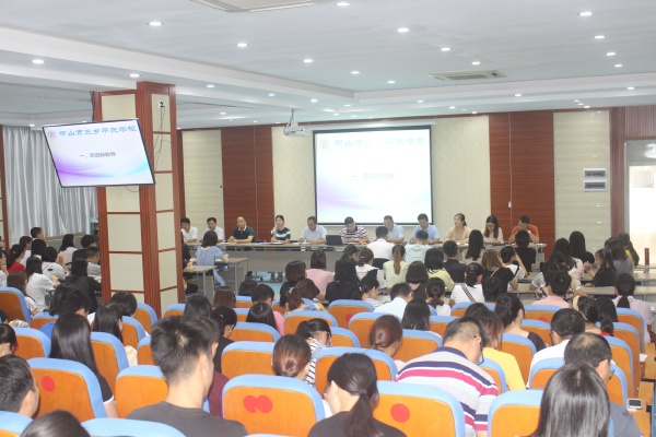 萬(wàn)浪主任首先對(duì)新教師的到來(lái)表示歡迎,并對(duì)每位新老師進(jìn)行了簡(jiǎn)單的介紹。接著由任小華副校長(zhǎng)向大家介紹學(xué)校暑假的招生情況,并對(duì)預(yù)備周的后勤工作進(jìn)行了布置。然后尹邦成副校長(zhǎng)向全體教師解讀了預(yù)備周的工作安排,并要求所有班主任按時(shí)按質(zhì)按量回收學(xué)生的暑假德育作業(yè)。