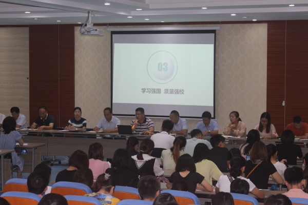 帶著對(duì)新學(xué)期的憧憬和希望,8月27日上午8:30,平東學(xué)校在多媒體會(huì)議室召開(kāi)了2019年秋季學(xué)期第一次教師大會(huì),會(huì)議由校辦室萬(wàn)浪主任主持,全體教師參加了會(huì)議。