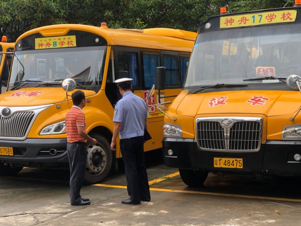 2019年秋季學(xué)期即將開學(xué)之際,為進(jìn)一步加強(qiáng)校車安全管理,保障轄區(qū)師生在新的一學(xué)期安全出行。8月31日下午,神灣交警大隊(duì)副大隊(duì)長張明珍、神灣交通局、神灣教務(wù)中心等部門領(lǐng)導(dǎo)蒞臨神舟學(xué)校對(duì)運(yùn)營校車開展了安全大檢查,全面排查校車交通安全隱患,對(duì)校車駕駛?cè)思半S車人員開展安全教育培訓(xùn)。神灣鎮(zhèn)黨委委員、公安局長古偉民、公安局副局長葉飛平隨后蒞臨神舟學(xué)校調(diào)研座談。