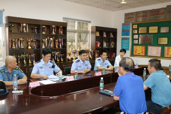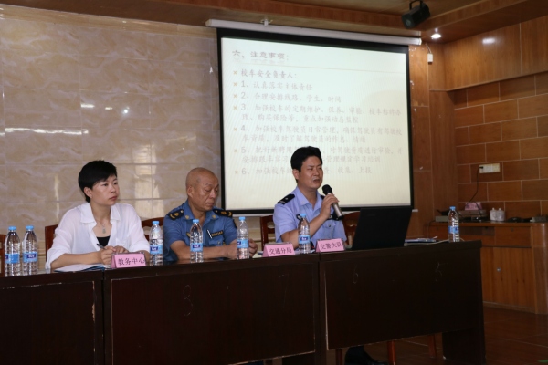 此次行動(dòng)由神灣教育事務(wù)指導(dǎo)中心牽頭,鎮(zhèn)交警大隊(duì)張明珍副大隊(duì)長帶隊(duì),主要對(duì)校車的燈光、剎車、輪胎、滅火器、安全錘、停車指示標(biāo)志、驗(yàn)車及保險(xiǎn)登記等是否齊全有效,駕駛?cè)藛T是否有駕駛資質(zhì)、隨車人員是否有相關(guān)證件等情況進(jìn)行了詳細(xì)的檢查。車輛檢查完畢后,張明珍大隊(duì)長在神舟學(xué)校多媒體教室給全體司機(jī)及隨車人員進(jìn)行了一場安全教育講座,簽訂安全駕駛責(zé)任書;隨后,神灣鎮(zhèn)黨委委員、公安局長古偉民、公安局副局長葉飛平蒞臨神舟學(xué)校開展新學(xué)期校園安全調(diào)研座談會(huì)。在調(diào)研會(huì)上,熊江華校長代表學(xué)校對(duì)古局長一行來校進(jìn)行實(shí)地調(diào)研指導(dǎo)工作表示熱烈歡迎,詳細(xì)介紹了學(xué)校的辦學(xué)理念、培養(yǎng)目標(biāo)、生源情況和發(fā)展戰(zhàn)略;奚水清長常務(wù)校長匯報(bào)重點(diǎn)介紹了學(xué)校的校園安保及校車管理等方面情況。實(shí)地調(diào)研之后,古局表示,將聯(lián)合相關(guān)部門對(duì)學(xué)校內(nèi)以及學(xué)校周邊環(huán)境存在的安全隱患進(jìn)行整治,全面落實(shí)學(xué)校安全保衛(wèi)工作,充分保障師生的人身安全;在學(xué)校領(lǐng)導(dǎo)班子成員的陪同下,古局長一行還實(shí)地察看了神舟學(xué)校的校容校貌,通過學(xué)校匯報(bào)了解學(xué)校辦學(xué)歷程和取得的豐碩成果。