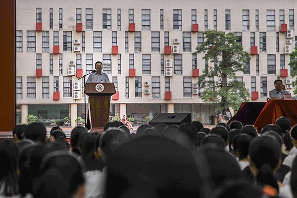 開學(xué)典禮在莊嚴(yán)的國歌聲中拉開帷幕。首先,袁鳳嬌逐一介紹學(xué)校校領(lǐng)導(dǎo)、各專業(yè)系領(lǐng)導(dǎo)、各行政部門領(lǐng)導(dǎo)以及各專業(yè)系的基本情況。隨后陳峰發(fā)表了致辭,他代表學(xué)校向新生們表示熱烈的歡迎和衷心的祝賀。接下來,他為新生們上了一堂精彩的入學(xué)第一課。陳峰告訴同學(xué)們中專學(xué)校的學(xué)習(xí)和生活與過去怎樣的不同,新生們靜耳聆聽他的教導(dǎo)。校園風(fēng)光迤邐,辦學(xué)業(yè)績輝煌,師資隊(duì)伍實(shí)力雄厚,宿舍環(huán)境設(shè)施精良,學(xué)習(xí)環(huán)境舒適,選修課豐富多彩,技能競賽名列前茅,升學(xué)率傲人等等。陳峰提了期望和要求,希望同學(xué)們在這三年里,首先要樹立遠(yuǎn)大的目標(biāo),并且要學(xué)好本領(lǐng)、學(xué)好做人!要與美好的中專校園為伴,要自律,修煉無需提醒的自覺,艱苦樸素的品質(zhì);與全新的專業(yè)學(xué)習(xí)為伴,要好學(xué),修煉吃苦耐勞的精神,嫻熟精湛的技能;與青春的成長生活作伴,要學(xué)會(huì)自立,修煉為人著想的善良,陽光大氣的風(fēng)采。陳峰還提醒大家不要觸碰五個(gè)零容忍,希望同學(xué)們珍惜學(xué)校為大家創(chuàng)設(shè)的優(yōu)厚學(xué)習(xí)條件,朝著六大素養(yǎng)修煉的目標(biāo),用三年的時(shí)間把今天訂立的目標(biāo)變?yōu)槊魈斓拿篮矛F(xiàn)實(shí)。