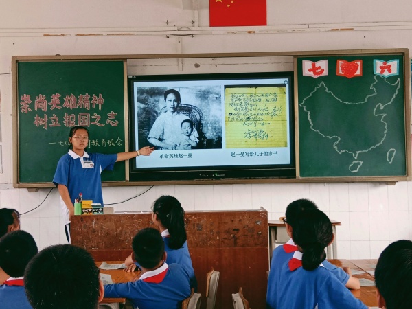 緊接著,同學們誦讀了老一輩革命英雄們的家書,家書中既包含著他們對家人的愛,也體現(xiàn)了他們對祖國的情。通過誦讀家書,走進英雄的內心深處,方老師引導同學們去感受英雄的信仰、堅守與情懷:有凌然就義的趙一曼、從容赴死的吉鴻昌、為民族解放而奮斗的韓雅蘭、為國犧牲的彭雪楓、心系祖國的傅常、以及戰(zhàn)場“神槍手”左權。