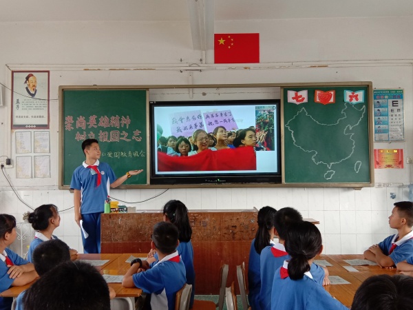 最后,同學們排隊將手上的卡紙貼在黑板右側的“中國地圖”上,以表達對祖國母親的愛,對英雄們的崇敬之心!并以合唱《國歌》結束了本次班會主題教育活動。