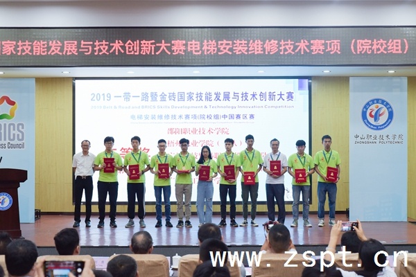 9月27日,“2019一帶一路暨金磚國家技能發(fā)展與技術創(chuàng)新大賽電梯安裝維修技術賽項(院校組)中國賽區(qū)賽”在中山職院遂賢廳順利閉幕。經過激烈比拼,由該校機電工程學院賀德明、翟永全兩位老師指導,李杰松、盧誠嵐同學組成的學校一隊憑借出色發(fā)揮,喜獲大賽一等獎;由王青、童中春老師指導的二隊,鄧發(fā)兆、列海凡同學獲三等獎;賀德明、翟永全獲評優(yōu)秀指導教師。