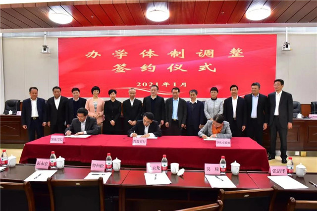 1月29日上午,廣東石油化工學(xué)院、韶關(guān)學(xué)院、嘉應(yīng)學(xué)院、惠州學(xué)院、肇慶學(xué)院5所高校辦學(xué)體制調(diào)整簽約儀式在廣州舉行。省委教育工委書記、省教育廳黨組書記、廳長景李虎出席儀式。省委教育工委委員,省教育廳黨組成員、副廳長、一級巡視員朱超華代表省教育廳分別與韶關(guān)市、梅州市、惠州市、茂名市、肇慶市政府及5所高校代表在辦學(xué)體制調(diào)整協(xié)議上簽約。