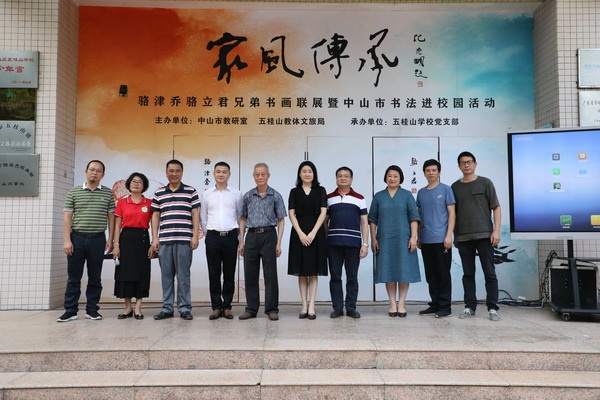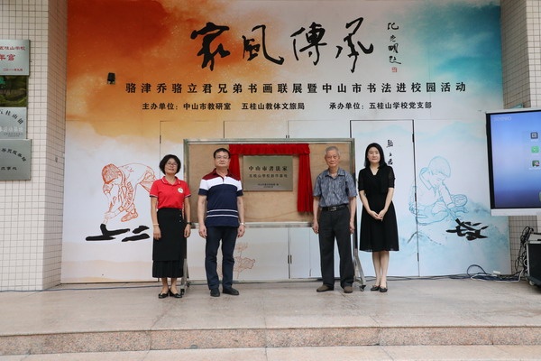 為傳承和弘揚中華優(yōu)秀傳統(tǒng)文化,推進學(xué)校書法教育,培養(yǎng)學(xué)生對書法的興趣,9月25日下午,五桂山學(xué)校在體育館舉辦了“家風(fēng)傳承——駱津喬、駱立君兄弟書畫展暨中山市書法進校園活動”。著名漫畫家方唐先生、五桂山黨工委副書記、人大工委主任武裝部部長李佳利以及中山市書法協(xié)會主席駱培華先生,中山市教師書法協(xié)會主席李武耀老師、中山市教研室書法教研負責(zé)人梁雪菊老師出席活動。