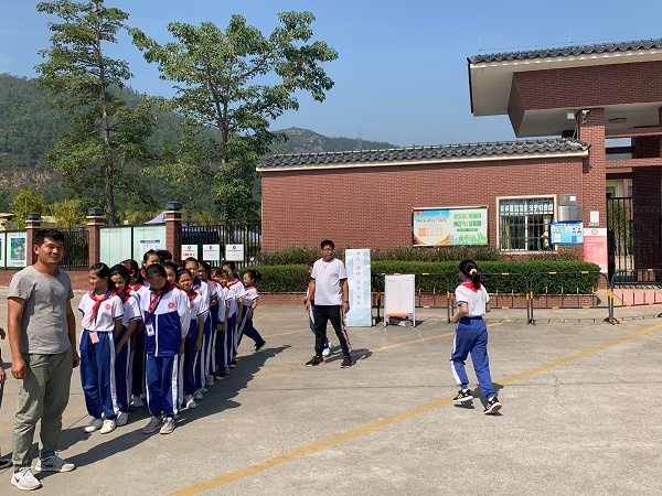 校車演練的目的是為了校車在路上突然發(fā)生安全事故時(shí),教師們能很好的處理突發(fā)事件,把學(xué)生生命安全放在首位。演練開始前,余校長安排所有教師和學(xué)生在操場進(jìn)行觀摩。演練開始,余校長帶領(lǐng)兩位跟車教師和20位學(xué)生進(jìn)行演練 模擬校車突然在路上發(fā)生安全事故時(shí)的緊急逃生,跟車?yán)蠋煷_保后方無行駛來車安全的情況下,迅速下車在車尾后方50米以外放置三腳警示牌以提醒后方來車前面有車輛發(fā)生事故。跟車?yán)蠋熝杆俅蜷_安全門,并且馬上從安全門跳下車輔助學(xué)生迅速地從安全門有序撤離,并撤離到指定的安全區(qū)域并有序集合,跟車教師認(rèn)真地清點(diǎn)學(xué)生人數(shù),檢查學(xué)生情況,確保沒有一位學(xué)生遺漏,同時(shí)向相關(guān)部門匯報(bào)情況。3位教師再次進(jìn)行演練步驟復(fù)習(xí),確保教師是否熟悉緊急逃生流程,演練順利結(jié)束。