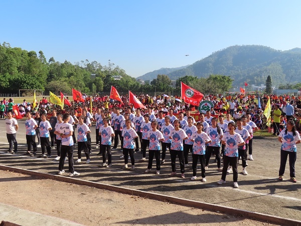 石芳文局長在講話中希望全體運動員們向學校柔道、足球隊的隊員學習,在比賽中發(fā)揚奧林匹克和五桂山老區(qū)精神,頑強拼搏,賽出水平,賽出風格,賽出五桂山學子的精氣神,并預祝五桂山學校第18屆運動會圓滿成功。五桂山學校黨支部書記,陳玉玲副校長對本次運動會提出要求和希望,期待五桂山學校的運動健兒們做快樂的追風少年,做最好的自己。最后,陳玉玲校長宣布:“五桂山學校第十八屆體育節(jié)開幕!”