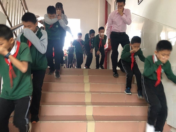 10日上午,第一節(jié)課下課,火災(zāi)警報聲響起。學(xué)生們立刻拿出平時備用的小毛巾,用礦泉水澆濕并捂住口鼻,在老師的帶領(lǐng)下彎腰有序地撤離火場,跑向遠(yuǎn)離火場的指定安全地點。小學(xué)部只用了4分多鐘,一千多名學(xué)生安全有序地疏散到指定地點。中學(xué)部最快的班級在不到46秒鐘就集中完畢,共耗時1分51秒。逃生時沒有發(fā)生擁擠、踩踏事故。