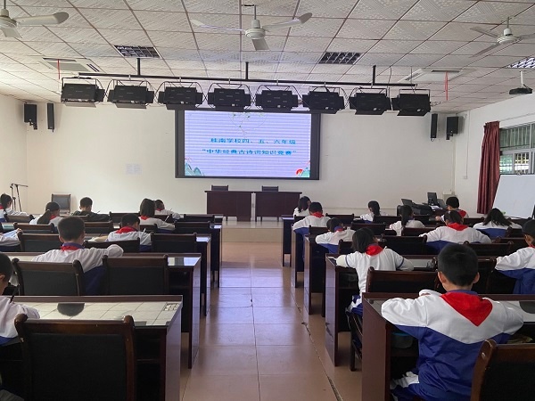 為提高學(xué)生對(duì)語文學(xué)科的學(xué)習(xí)興趣,激發(fā)學(xué)生學(xué)習(xí)積累古詩詞的熱情,使學(xué)生養(yǎng)成多讀書,多感悟的好習(xí)慣,同時(shí)考查學(xué)生對(duì)應(yīng)掌握古詩文的積累情況,桂南學(xué)校小學(xué)部本學(xué)期開展了“潤澤少年 書香校園”古詩詞積累活動(dòng)。