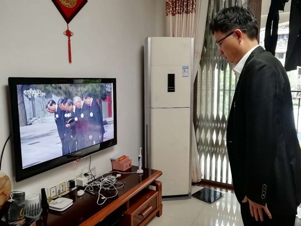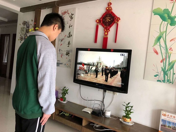 4月4日上午10時,防空警報鳴響。室外,汽車、火車、艦船鳴笛,山河嗚咽,舉國齊悲。身處各地的五桂山學(xué)校的師生們懷著沉痛的心情,在電視機(jī)前默哀三分鐘,深刻緬懷英雄和逝去的同胞,莊重感,肅穆感撲面而來。