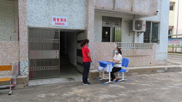 第二個(gè)預(yù)設(shè)場(chǎng)景是課堂演練,模擬課堂上學(xué)生出現(xiàn)身體不適、有發(fā)熱、嘔吐和輕微咳嗽癥狀的處置流程。第三個(gè)預(yù)設(shè)場(chǎng)景是課間演練,模擬課間活動(dòng)的情景,對(duì)學(xué)生進(jìn)行課間活動(dòng)指引。第四個(gè)預(yù)設(shè)場(chǎng)景是飯?zhí)醚菥?,模擬師生就餐的情景,對(duì)師生就餐秩序進(jìn)行指引。第五個(gè)預(yù)設(shè)場(chǎng)景是宿舍演練,模擬宿生出現(xiàn)咳嗽、發(fā)燒等癥狀的處置流程。
