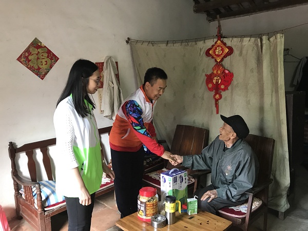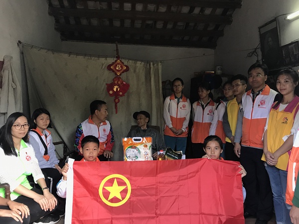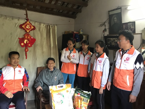 活動(dòng)當(dāng)天,在五桂山辦事處團(tuán)工委書記陳惠宜、五桂山辦事處團(tuán)工委干事劉素貞、五桂山學(xué)校黨支部書記劉繼恭、五桂山學(xué)校中學(xué)部德育主任劉偉雄、五桂山學(xué)校團(tuán)委書記馮銳強(qiáng)、團(tuán)委委員鄧運(yùn)良以及五桂山城管工作人員等的帶領(lǐng)下,慰問組一行二十余人分別慰問了家住石鼓村的老人、困難學(xué)生家庭共三戶,給他們送去了油、米、奶粉、麥片等慰問品。志愿者們先是來到了一家彭姓老人的家里,給老人送上了慰問品后,志愿者們和老人聊起了家常,詢問老人的生活情況、身體狀況,了解老人的想法和需求,有些志愿者還給老人講解預(yù)防和處理突發(fā)事件的知識(shí)。大家有說有笑,特別是在學(xué)生志愿者的青春熱情的感染下,老人露出了喜悅的笑容。在征得老人同意的情況下,志愿者們分工合作,幫助老人掃地、拖地、擦窗、抹桌椅,大家團(tuán)結(jié)協(xié)作、發(fā)揚(yáng)不怕苦、不怕累、不怕臟的雷鋒精神,把老人家里家外打掃得干干凈凈、收拾整整齊齊。老人對(duì)志愿者們的辛勤付出表示感謝,并和志愿者們一起合照留念。之后,志愿者們走訪了兩家困難學(xué)生家庭,給他們送上了慰問品和關(guān)愛。