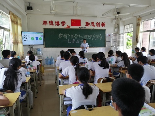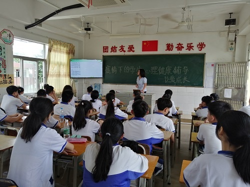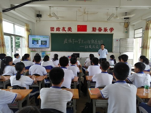 為了加強(qiáng)疫情期間學(xué)生心理健康輔導(dǎo)工作,提高學(xué)生防控意識(shí),引導(dǎo)學(xué)生以積極心態(tài)面對(duì)疫情,學(xué)會(huì)如何在疫情狀態(tài)下保護(hù)好自己和家人,2020年5月25日下午,桂南學(xué)校中學(xué)部開展了以“疫情下的學(xué)生心理健康輔導(dǎo)——讓愛成長”為主題的心理健康班會(huì)課。