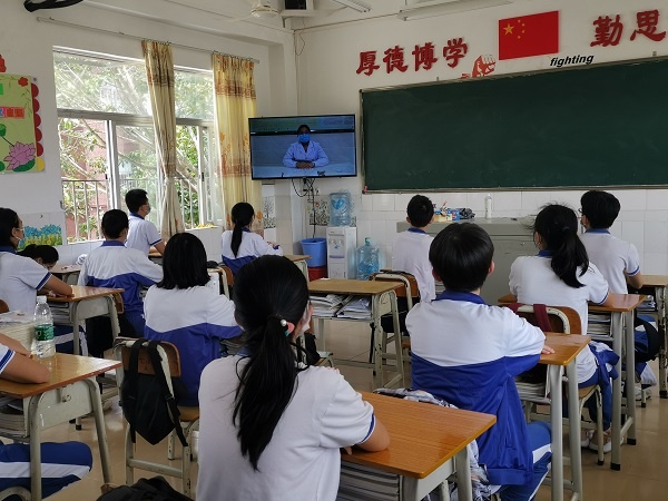 中午,學(xué)生進(jìn)行午檢后有序進(jìn)入就餐教室,陪餐老師嚴(yán)格按照疫情期間的防控要求管理學(xué)生,學(xué)生就餐后迅速離開(kāi)就餐教室,到戶外放松心情。午休鈴響后,學(xué)生回到教室摘下口罩進(jìn)行午休。下午,校醫(yī)甘慧琴通過(guò)直播平臺(tái),再次向?qū)W生進(jìn)行了疫情防控措施的宣傳,甘醫(yī)生向?qū)W生詳細(xì)講解了疫情防護(hù)的建議和要點(diǎn),強(qiáng)調(diào)了做好日常衛(wèi)生工作的重要性,學(xué)生認(rèn)真聽(tīng)講并做筆記。下午三點(diǎn)五十分,學(xué)生有序排隊(duì)測(cè)量體溫,體溫正常者方可上校車,由跟車?yán)蠋熥o(hù)送回家。