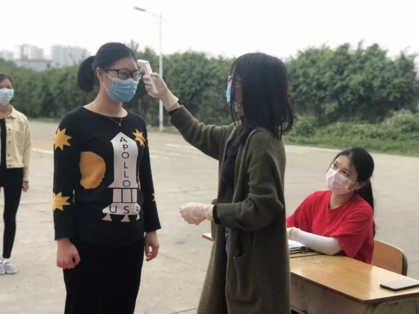 第二階段是模擬演練。老師們分工合作,扮演學(xué)生進入演習(xí)狀態(tài),入校體溫測試、鞋底消毒、校門口值日老師引導(dǎo)、隔離觀察流程、緊急情況處理等各個環(huán)節(jié)落實到人,確保演練細節(jié)到位。從學(xué)生乘坐校車、入校離校路線、口罩核查、紅外體溫檢測、衛(wèi)生消毒、間隔就餐等多方面考慮,為及時發(fā)現(xiàn)并妥善處理學(xué)生返校時可能出現(xiàn)的突發(fā)情況積累第一手的應(yīng)變經(jīng)驗。