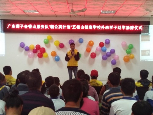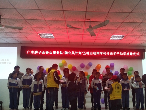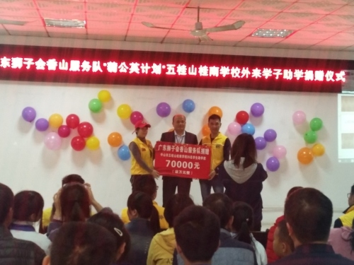 2019年12月27日下午3:30,廣東獅子會香山服務隊來到桂南學校,在桂南學校大會議室舉行了“‘蒲公英計劃’五桂山桂南學校關愛外來學子助學”活動。參加本次捐贈儀式的有廣東獅子會香山服務隊的10位獅兄獅姐、桂南學校中學部阮仕斌校長以及桂南學校35名受資助學生和家長。