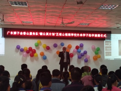 本次活動有五項議程。首先由主持人介紹了出席活動的嘉賓——香山服務隊上屆隊長彭樹坤獅兄、第三副隊長廖矢勤獅姐、糾察徐濟洪獅兄、總務岑健獅兄等10名獅友。緊接著,由桂南學校中學部阮校長講話,他對獅子會的所有獅兄、獅姐們的愛心之舉表示了誠摯的感謝,并勉勵受資助的同學,要化愛心為力量,努力學習,將來為社會做出應有的貢獻。