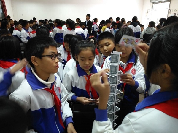 本次數(shù)學(xué)活動周內(nèi)容豐富,形式多樣,老師們精心設(shè)計活動。在五天時間里,學(xué)生們體會“學(xué)數(shù)學(xué)、用數(shù)學(xué)、創(chuàng)數(shù)學(xué)”的過程。老師們利用早讀和活動課時間分年級舉辦了多種形式的數(shù)學(xué)活動:一年級的“口算比賽”, 二年級的“翻撲克牌游戲”, 三年級的“創(chuàng)意拼多多”, 四年級的“體驗一億有多大”, 五年級的“創(chuàng)意撲克牌搭建”, 六年級的“圖形設(shè)計師”。 學(xué)生們在活動中提高了想象力、創(chuàng)造力,如:三年級的學(xué)生,以組為單位分工合作、發(fā)揮想象,把樹葉拼出各種各樣的圖形;六年級的小設(shè)計師,在規(guī)定的時間內(nèi)利用圓規(guī)和三角板設(shè)計出各種美麗的圖案。學(xué)生們紛紛表示這次的活動又好玩,又學(xué)到知識。