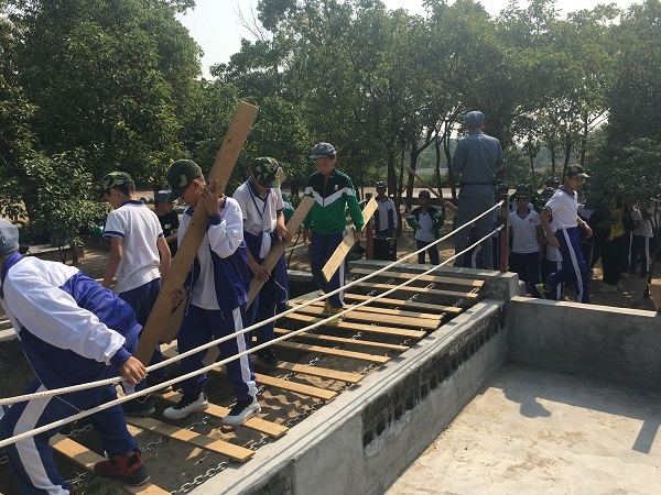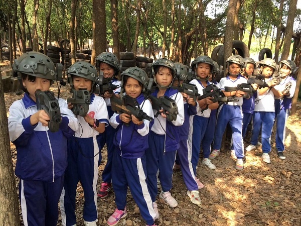 到達(dá)目的地,孩子們立刻集合,吹響集結(jié)號,聽指揮員講解關(guān)于紅軍長征的故事講座。接著,是參加紅軍課程時間。活動項目分別有:一、戰(zhàn)場小勇士,主要學(xué)習(xí)如何正確拿槍,使用槍。二、激戰(zhàn)臘子口,這是孩子們最愛體驗的一項活動,同學(xué)們團(tuán)結(jié)合作,激烈對戰(zhàn),沉浸其中,流連忘返。三、飛奪瀘定橋,同學(xué)們通過團(tuán)體協(xié)作的力量,搭起了生命之橋,一步一步艱難的走過了這座橋,挑戰(zhàn)困難,戰(zhàn)勝自己。四、勇闖雷區(qū),同學(xué)們認(rèn)真探雷并找雷。五、營地帳篷搭建,同學(xué)們分工合作,迅速學(xué)會了搭帳篷,收帳篷。六、投擲手榴彈,同學(xué)們結(jié)合指揮員的講解,學(xué)會了正確投擲手榴彈。