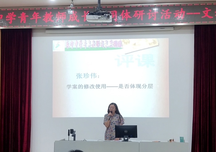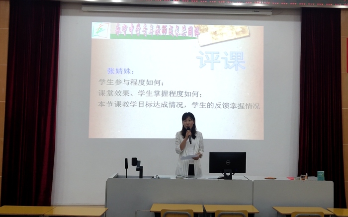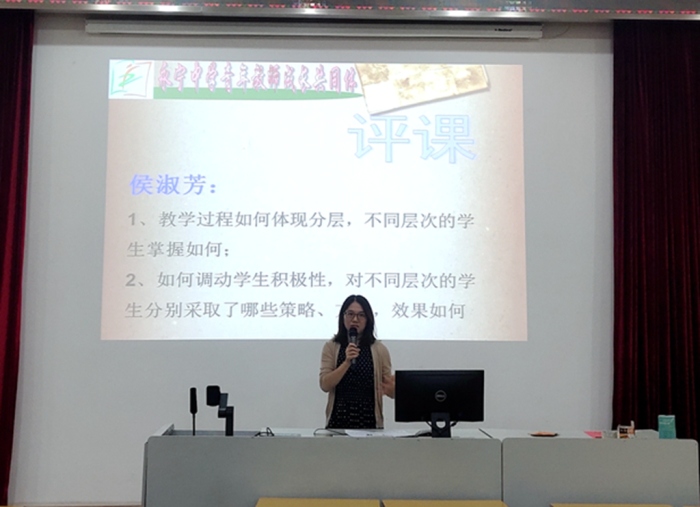 活動(dòng)第二項(xiàng):評(píng)課。首先,丘老師就本節(jié)課的分層教學(xué)進(jìn)行了說(shuō)課,詳細(xì)地從分層教學(xué)設(shè)計(jì)和分層教學(xué)實(shí)施兩大方面向大家做了詳細(xì)闡述,讓老師們對(duì)這堂課以及分層教學(xué)有了更清晰的認(rèn)識(shí)。接著,語(yǔ)文、英語(yǔ)、政史地科組老師代表進(jìn)行評(píng)課。語(yǔ)文科組張珍偉老師著重從學(xué)案分層設(shè)計(jì)的角度來(lái)闡述。英語(yǔ)科組侯淑芳老師則從課堂分層落實(shí)情況發(fā)表了自己的見解。她重點(diǎn)回答了兩方面的問(wèn)題:1.如何調(diào)動(dòng)學(xué)生的積極性?對(duì)不同的學(xué)生分別采取了哪些策略、方法?效果如何?2.教學(xué)過(guò)程中如何體現(xiàn)分層?不同層次的學(xué)生掌握得如何?政史地科組張婧姝老師則重點(diǎn)從以下角度進(jìn)行評(píng)課:1.學(xué)生參與度如何?2.課堂效果、學(xué)生掌握程度如何?3.本節(jié)課教學(xué)目標(biāo)達(dá)成情況,學(xué)生的反饋情況如何?三位老師從不同的評(píng)課視角詳細(xì)闡述了本節(jié)課分層教學(xué)的方方面面,有想法,有見地,與會(huì)的老師聚精會(huì)神,受益匪淺。