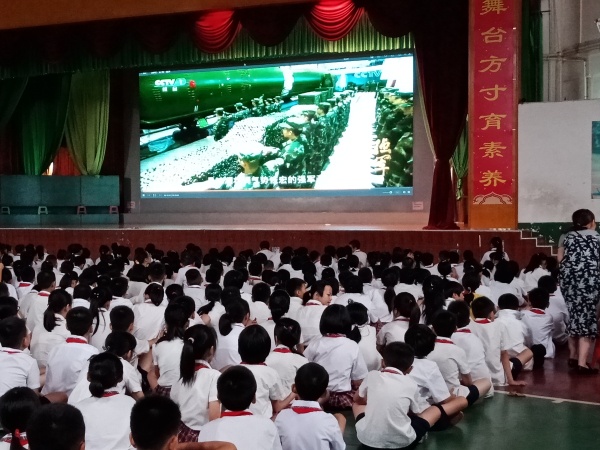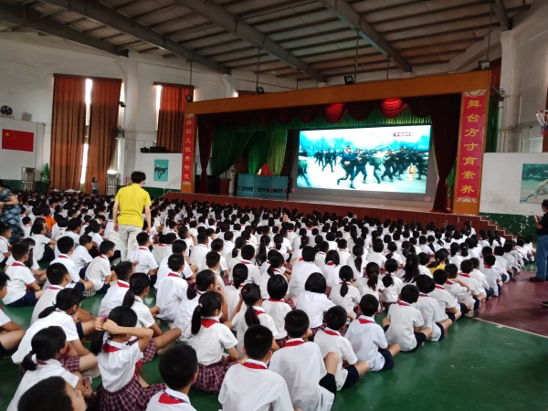 9月10日,伴隨清新的秋韻,績西小學(xué)組織全校師生在體育館觀看《強軍夢·家園情》國情教育片。