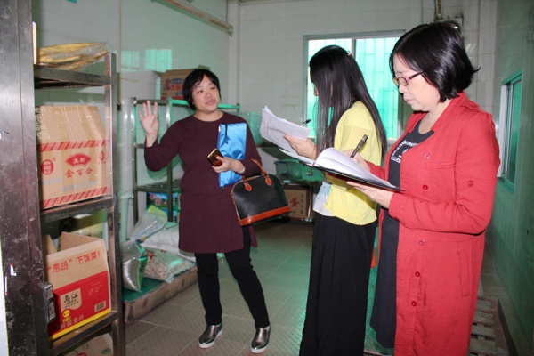 檢查組一行首先聽(tīng)取吉安學(xué)校校長(zhǎng)韋志海有關(guān)食品安全和衛(wèi)生防疫工作的匯報(bào),并查閱相關(guān)資料。接著對(duì)食堂及校園各個(gè)區(qū)域的衛(wèi)生安全情況進(jìn)行實(shí)地查看。其中檢查組重點(diǎn)檢查了食堂的食品及環(huán)境衛(wèi)生情況。詳細(xì)檢查了食堂食品存儲(chǔ)間、食品原材料加工間、食品烹飪間、飯菜分配間、食品留樣柜、餐具消洗各環(huán)節(jié)的運(yùn)行情況,并認(rèn)真查看了學(xué)校的食堂制度建設(shè)、采購(gòu)記錄臺(tái)帳、索票索證資料、飯菜試嘗記錄、留樣記錄,詢問(wèn)食堂相關(guān)管理人員等。吉安學(xué)校的食堂能夠建立各種規(guī)章制度,嚴(yán)格按照食品安全要求進(jìn)行生產(chǎn)操作,食品衛(wèi)生安全達(dá)標(biāo)。另外校園環(huán)境優(yōu)美、干凈,室內(nèi)物品擺放整潔,能做好通風(fēng)消毒工作。對(duì)于學(xué)校的食品安全和衛(wèi)生防疫工作,檢查組除了給予充分肯定,同時(shí)也提出了更高的希望和要求:1.食品安全無(wú)小事,希望學(xué)校要繼續(xù)堅(jiān)持做好每一項(xiàng)工作,落實(shí)好食品每個(gè)環(huán)節(jié)的操作規(guī)程。2.要加強(qiáng)疾病防控預(yù)防工作力度,完善疾病防控工作制度。3.要做好設(shè)施設(shè)備的更新。