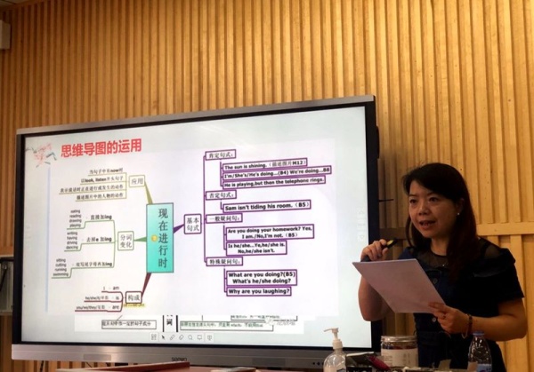 首先,侯淑芳老師展示了一節(jié)七年級下冊的讀寫課。圍繞著學(xué)校旅行這個(gè)話題,本課的教學(xué)目標(biāo)是掌握有關(guān)旅游的單詞、句子和一般過去時(shí)的用法,提高學(xué)生們的閱讀能力和寫作能力。同時(shí),培養(yǎng)學(xué)生們熱愛生活熱愛旅行,拓寬視野,最重要的是培養(yǎng)學(xué)生面對這個(gè)大千世界,要始終保持一種積極向上,樂觀自信態(tài)度,為培養(yǎng)他們正確的人生觀價(jià)值觀打下基礎(chǔ)。侯老師首先通過播放有關(guān)校園生活的視頻激發(fā)學(xué)生的興趣,通過做游戲來復(fù)習(xí)過去式,寓教于樂。然后,借助于思維導(dǎo)圖等方法引導(dǎo)學(xué)生認(rèn)真閱讀并深刻分析了文章。最后,讓學(xué)生根據(jù)思維導(dǎo)圖寫一篇自己最難忘的旅行日記。整節(jié)課教學(xué)過程非常流暢,教學(xué)活動(dòng)真實(shí)、有趣、有效。特別是侯老師對整個(gè)課堂的把控能力很強(qiáng),與學(xué)生互動(dòng)很好,在侯老師的帶動(dòng)下,課堂氣氛逐漸活躍,教學(xué)效果很好。課后受到了聽課老師的一致好評。