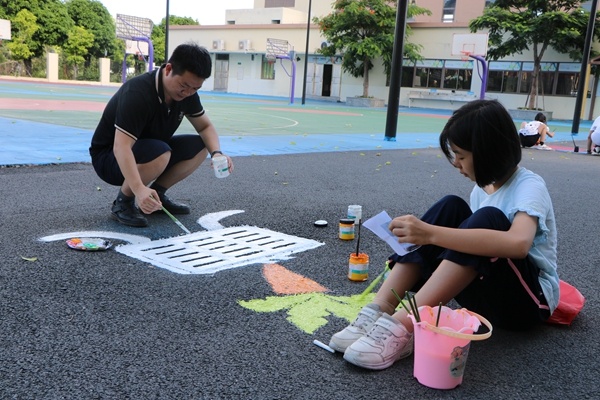 “為了今天這場活動(dòng),我們美術(shù)科組的老師前期做了大量的準(zhǔn)備工作,統(tǒng)計(jì)全校所有的窨井蓋的個(gè)數(shù)及地點(diǎn),選出可以使用的井蓋數(shù)量并做好編碼及分配工作,提前讓孩子們熟悉需要畫的井蓋位置,聯(lián)系家長、購買工具等?!睂W(xué)校美術(shù)科組長陳穎老師介紹,“我們還要通知學(xué)生家長具體參賽時(shí)間以及要求,認(rèn)真做好繪畫活動(dòng)當(dāng)天的秩序及安全工作安排,做好指引與材料分發(fā)工作?!?/p>