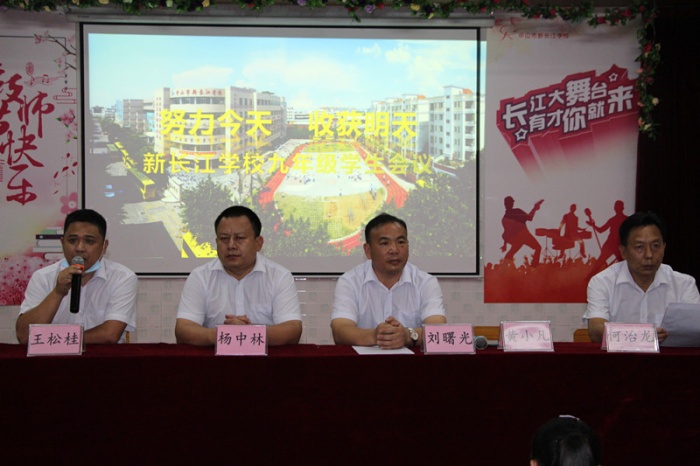 秋高氣爽,丹桂飄香。為了調(diào)整好九年級全體學(xué)生的備考心態(tài),進(jìn)一步激發(fā)備戰(zhàn)中考的斗志,以嶄新的心態(tài)踏上中考的征程。9月15日下午,中山市新長江學(xué)校在階梯教室舉行了以“努力今天,收獲明天”為主題的九年級中考思想動員大會。劉曙光校長、楊中林副校長、教務(wù)處王松桂主任、德育處何治龍副主任、全體九年級科任老師和學(xué)生參加了動員大會。