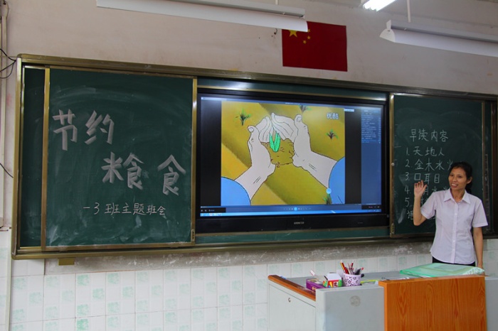 參加完升旗儀式,各班開展了節(jié)約糧食的主題班會。各班主任通過多媒體屏幕和同學們朗讀了《憫農(nóng)》這首詩,“春種一粒粟,秋收萬顆子。四海無閑田,農(nóng)夫猶餓死?!边@幾個字格外醒目,教育了同學們要知道每一粒糧食都來之不易,提醒同學們珍惜糧食、減少浪費。老師還向同學們講解了節(jié)約糧食的重要性和浪費糧食的危害性。通過觀看節(jié)約糧食的小短片,每一個畫面生動形象,教育和引導學生要從自身做起,養(yǎng)成節(jié)約糧食的好習慣。