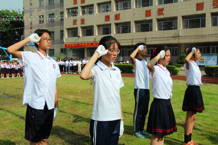 8時許,新長江學校舉行了升旗儀式,升旗儀式完畢后,舉行“節(jié)約糧食”的國旗下講話。